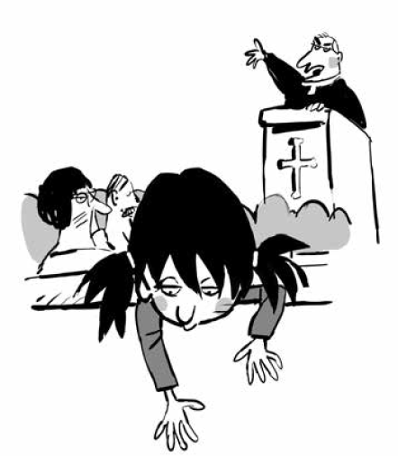 – Ты, что ли, на кнопку села? – сердито пробурчала мама дочери в церкви во время конфирмации[3] Гутти – двоюродного брата Фиасоль. Фиасоль уже тридцать три раза успела вскочить, посидеть рядом с мамой, рядом с папой, сходить в туалет, постоянно пыталась поболтать с братом, который сидел у алтаря вместе с другими детьми, проходившими конфирмацию. Она уже успела схватить церковные песенники и сложить их штабелем, порыться в маминой сумке и примерить бабушкин шарфик.