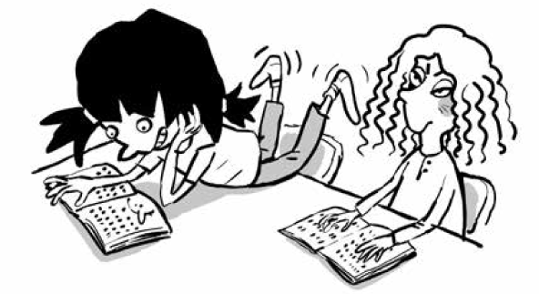 – Вот-вот. Она сказала, что я беспокою соседку. Сказала, что я ей мешаю. Ей неудобно сидеть со мной, потому что нам нужен не один стол, а два, если я буду читать лёжа. Но я не мешаю этой девочке. Да я и сама знаю, я её уже спрашивала.