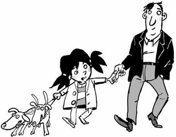 Фиасоль знает, что надо протянуть указательный палец. И однажды на улице Грайналюнд в Грасабайре произошёл совершенно удивительный случай. Фиасоль встретила папу, когда возвращалась домой после прогулки с ленивыми болонками.