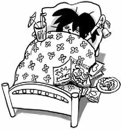 Вышла мама в халате. Она не хотела есть, а только сказала, что Фиасоль должна побыть ещё денёк дома и потом наверняка здоровая пойдёт в школу. Фиасоль легла спать в своей комнате среди ужасной кучи хлама.