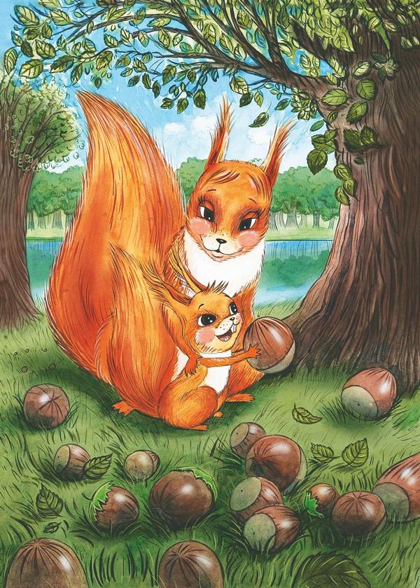 – Ну вот ты и нашёл свои первые орешки, – сказала мама-белка и улыбнулась.