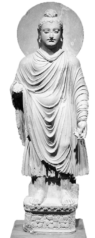 Будда в греческой накидке и с традиционной прической. Гандра, Пакистан, ок. I–I в.