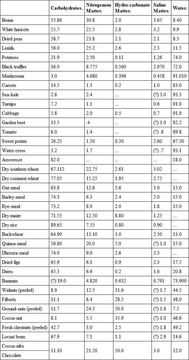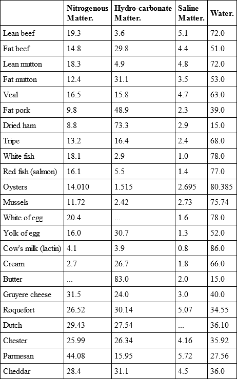 The analyses are those of Fresenius, Letheby, Pavy, Church, and others.