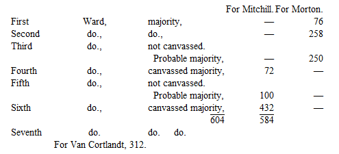 With the highest respect, &c.P.S. – Since writing the above I learn from undoubted authority that Mr. Mitchill is elected by upwards of one hundred majority.