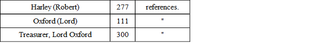 A like instance of bad indexing will be found in Scott's edition of Swift's Works. Here there are 638 references to Robert Harley, Earl of Oxford, without any indication of the reason why his name is entered in the index. This case also affords a good instance of careless indexing in another particular, for these references are separated under different headings instead of being gathered under one, as follows: