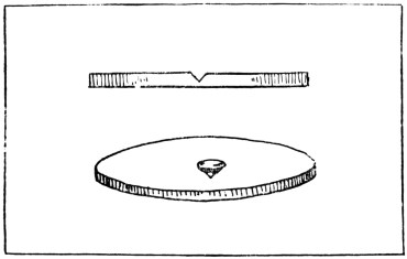 For the method of encircling suspect smudges, either before or after enlargement, and measuring from one fixed centre by the Kew micrometer or ordinary compasses, I have devised a disc of glass such as is used in microscope slides, and about the size of half-a-crown. In the centre is a conical pit into which one leg of the compass rests. Precise centring is thus obtained without the slightest risk of damaging the photographic or other exhibit by the sharp point of the compasses, which have, at the same time, free swing. These were prepared for me by Mr. Franks, optician, Stoke-on-Trent, and cost very little.