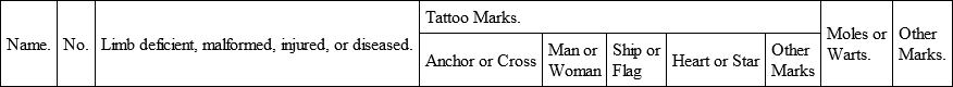 Here is a specimen of the Register Form as applying to the Right Arm – one of the nine divisions of the body for this purpose.