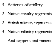Friday, 23rd April.– Being, for the present, the next senior officer to General Primrose, I exercise the command of all the troops at Kandahar, and all local arrangements and details are in my hands, as General Primrose commands the whole force, the senior officer at each place having the local command. When General Burrows arrives the command here devolves, by virtue of his seniority, on him, and I fall back on my brigade command, which I hold now in conjunction with the large command. The troops here form a nice little force, and consist of —