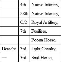 August 4th.– All at the works. The enemy was rather troublesome, but a few shot and shell, and a steady fire from our selected marksmen, kept them off. The Wāli's Cavalry – about 80 men – went out of the Shikarpore Gate and looted some forage, about a mile to the front, in very good style. Prepared an Abatis in front of my gate, and cut off the water supply of a village 1,000 yards due south. Slept on the ramparts, and visited all my line twice between 11 p.m. and 4 a.m. I have a camp bed up on the walls, but no one undresses, and sleep is taken in very small snatches. I may say now I live on my wall, as, except returning to the Citadel for breakfast and dinner and a wash, I never leave the ramparts. We have rather a snug little mess, managed by Colonel Beville, consisting of General Burrows and his Brigade Major, Captain Law; Colonel Beville, and Captain Leckie, my Brigade Major, and myself. So far we have fared very comfortably, as there is a good deal to be bought, and we had a good deal of stores, &c., when we came in. I have quite given up any sort of wine or spirits during the day, and drink nothing but water or cold tea until dinner, when I have one glass of sherry, and sometimes a little hock and water, but generally, when I can get it, lime juice and water. I never touch spirits at all, and am convinced that for hard work there is nothing like drinks that do not inebriate.