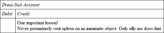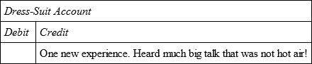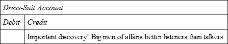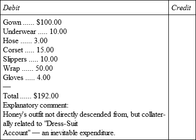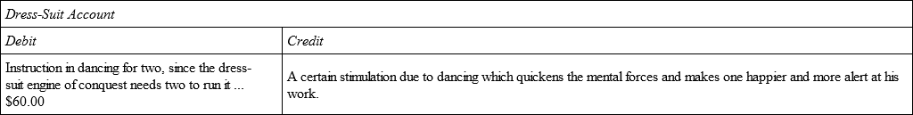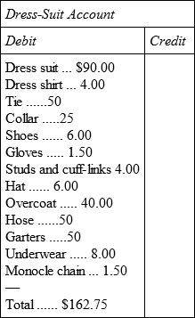 True to his word, Skinner proceeded to keep a little book marked "Dress-Suit Account." He was probably the only man, he reflected, who had ever done such a thing, and he did it at first more as a joke than anything else. But he found that the "Dress-Suit Account" developed serious as well as humorous possibilities. He first entered carefully, item by item, the cost of the dress suit and its accessories.