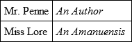 Mr. Penne – Good morning, Miss Lore. Glad to see you so prompt. We should finish that June installment for the Epoch to-day. Leverett is crowding me for it. Are you quite ready? We will resume where we left off yesterday. (Dictates.) "Kate, with a sigh, rose from his knees, and – "