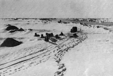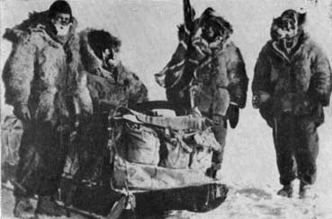 Судя по тому, что мы видели во время полета для разведки ледовой обстановки, единственная возможность пересечь зону взломанного льда к северу от Барроу заключалась в том, чтобы сделать крюк в 60 миль к востоку. В том районе полоса битого льда, граничившая с северной кромкой припая, была уже всего, шириной около полумили. В других местах линия сдвига проглядывалась менее отчетливо, так как ледяные поля вокруг часто претерпевали изменения и столько раз возникали трещины, что линии сдвига сами были изломаны. Мы не были уверены, что избранный нами путь окажется проходимым, но стоял штиль и температура воздуха была минус 40° С. Предзнаменования были хорошие; мы в самом веселом расположении духа двинулись в путь, рассчитывая к полудню 25 февраля пройти первые 60 миль.