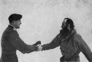К тому времени (10 мая), когда канадские военно-воздушные силы сбросили нам первое месячное пополнение, мы прошли около 900 путевых миль. Мы наблюдали, как ведет себя лед весной, и находились на молодых льдинах, когда они стали раскалываться. Мы прошли с нартами через обширные пространства льда, толщина которого едва выдерживала нас: всего несколько дней назад здесь были моря открытой воды. Преодолевая ледяные горы, озера открытой воды и ледяные острова, то взбираясь на ледяные холмы, то скатываясь с них и двигаясь по ослепительно сверкавшим долинам, мы прокладывали путь из зимы в раннее лето. Ледяной ландшафт, подчас хаотический, был в то же время таким спокойным, таким обманчиво тихим; даже трудно было поверить, что эта вышина гор не превосходила 30 футов, а море под нашими ногами уходило на глубину 10 тысяч футов. Наши нарты стали, однако, обнаруживать признаки износа, утомление чувствовали и мы. Я наблюдал, как три моих спутника уныло брели за нартами. Лица их были усталые, обветренные и обмороженные. Длинные трещины в полозьях мы скрепили металлическими полосами, а сломанные передки саней связывали проволокой и веревками. И вот мы достигли 80° с. ш., напрасно надеясь, что такие ужасные трудности, с какими мы столкнулись в последние шестнадцать дней, больше не встретятся.