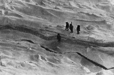 Трещины и разводья теперь попадались через каждые несколько сот ярдов. Все вокруг пришло в движение, крутясь в медленном водовороте. Образовалась какая-то неразбериха течений, противотечений и ветров, которые гоняли туда и сюда морской лед, как накипь на воде. Мы продвинулись всего на шесть градусов по долготе, борясь за каждую милю и идя по ночам, чтобы избежать дневных температур, которые иногда бывали выше точки замерзания.