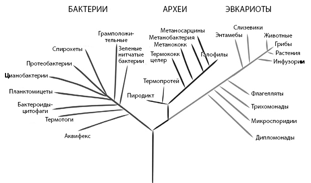 Рис. 5. Древо жизни, изображающее три биологических домена.