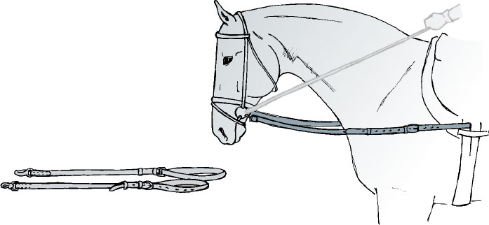 Чтобы помочь лошади или всаднику, в определенных фазах процесса подготовки или в некоторых ситуациях есть смысл применять вспомогательные поводья. Назначение вспомогательного повода в этих случаях заключается в том, чтобы научить всадника устанавливать правильный контакт со ртом лошади.