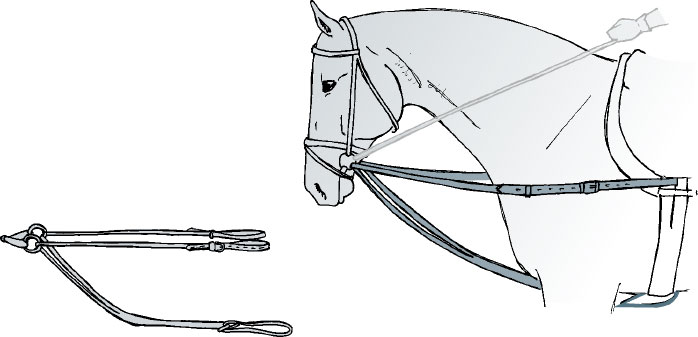 Вспомогательные поводья должны обеспечивать пусть и не прямой, но достаточно спокойный и правильный контакт в случаях, когда рука всадника или рот лошади еще не готовы к установлению непосредственного контакта.