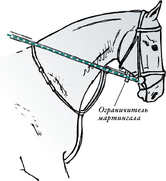 Мартингал должен быть такой длины, чтобы при нормальном положении головы лошади сохранялась прямая линия, идущая от рта животного до локтя всадника.