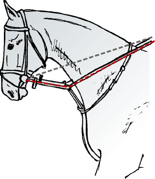 • лошадь может вытягивать шею и голову вниз и вперед, не уводя линию лба и носа за вертикаль;