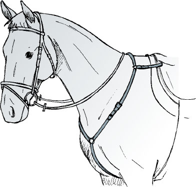 НАГРУДНИК помогает удерживать седло на месте в ситуациях, когда оно может сползти назад (например, при езде резвым галопом или по холмистой местности). Чтобы нагрудник выполнял свою функцию, его нужно подбирать по размеру и правильно подгонять.