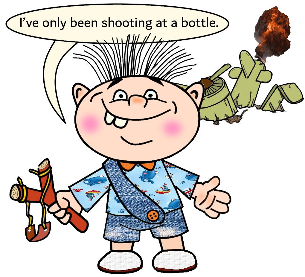 “No, sir,” said the boy, sticking his slingshot in his shirt, “I’ve only been shooting at a bottle.”