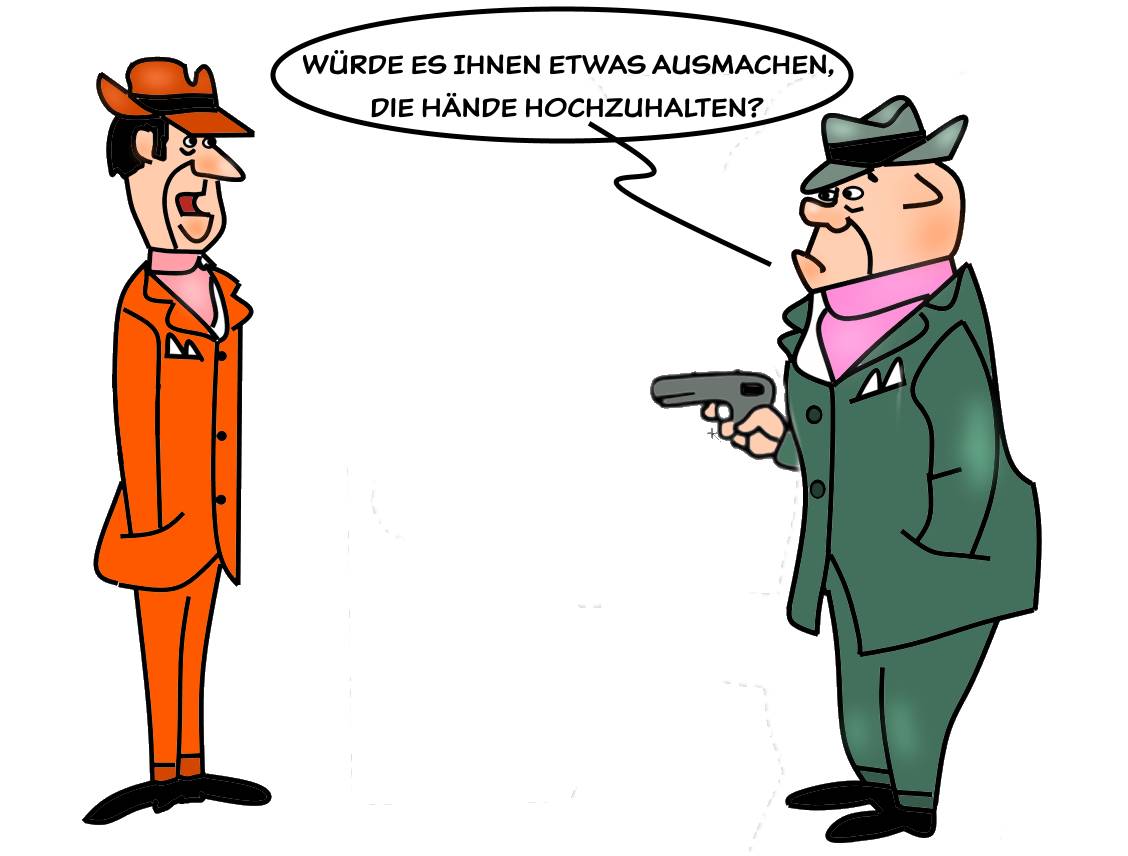 11. „Würden Sie mir vielleicht verraten, warum man mich verhaftet hat?“ – „Nicht verhaftet, sondern nur vorläufig festgenommen, bis wir wissen, wer Sie sind.“