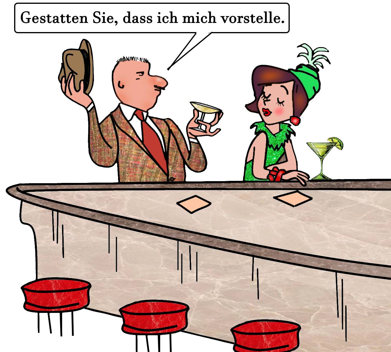10. “Tut mir leid, wenn ich störe, aber darf ich Ihre Tochter zum Tanz auffordern?“ – „Sie dürfen, junger Mann, wenn Sie mir Ihren Namen verraten. Sie verstehen sicher, dass ich meine Tochter keinem fremden Mann anvertrauen kann.“ – „Entschuldigung. Gestatten Sie, dass ich mich vorstelle. Ich heiße Richard Rabe.”