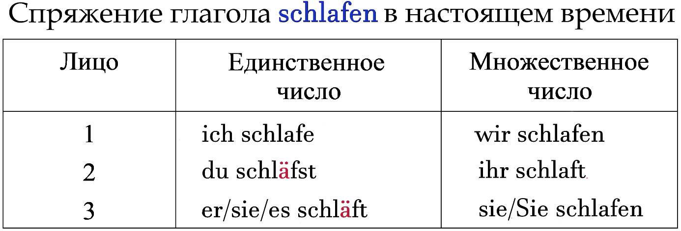 Примечание к таблице: точно также спрягается глагол verschlafen.