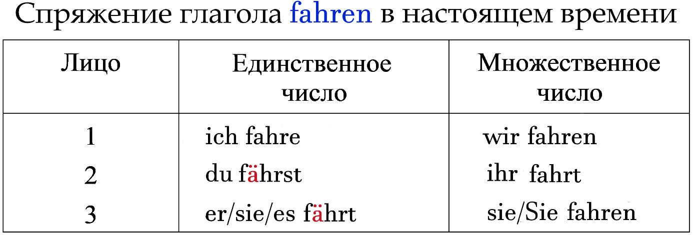 Передайте содержание следующих диалогов по-немецки, но прежде внимательно изучите таблицу спряжения глагола fahren.