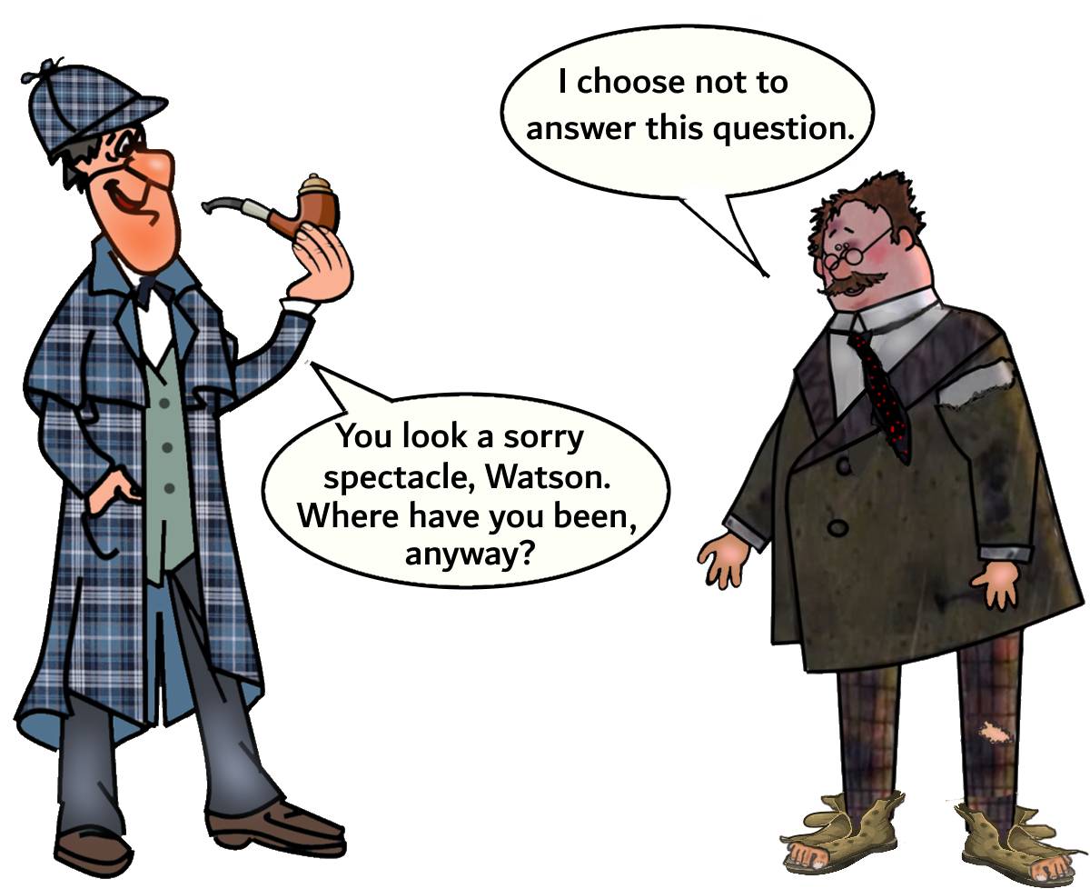 Ключ. 1. “Do you love your wife?” “I choose not to answer this question.” 2. “How did you earn your first million?” “I choose not to answer this question.” 3. “How much did you lose?” “I choose not to answer this question.” 4. “Where did you get this money?” “I choose not to answer this question.” 5. “How do you earn your living?” “I choose not to answer this question.” 6. “What were you doing between 9 and 10 o’clock last night?” “I choose not to answer this question.”