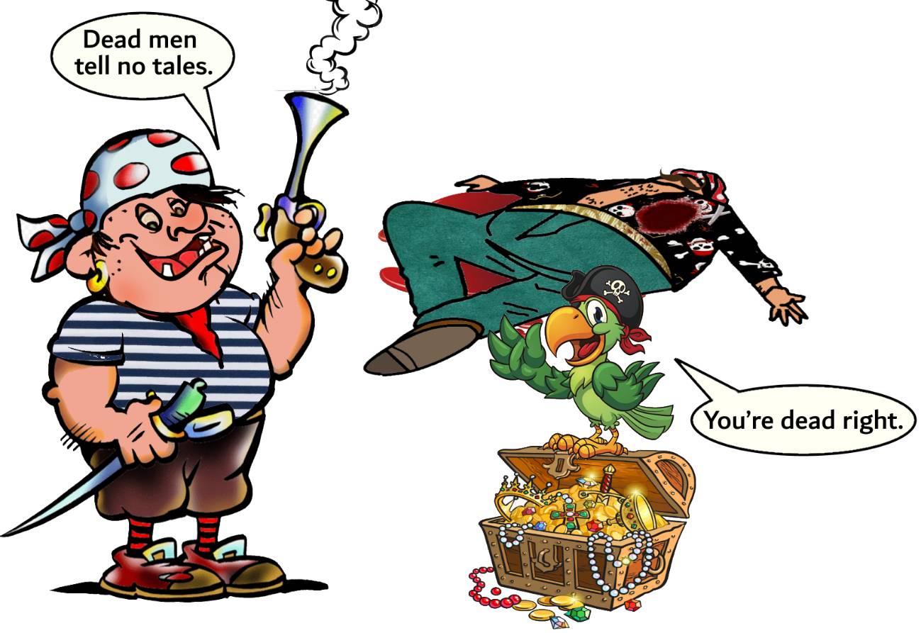 Ключ. 1. “He shouldn’t have played cat and mouse with us.” “You’re dead right. He shouldn’t have.” 2. “He shouldn’t have played us against each other.” “You’re dead right. He shouldn’t have.” 3. “He is dead from the neck up.” “You’re dead right.” 4. “It is better to be wealthy and healthy than poor and ill.” “You’re dead right.” 5. “Dead men tell no tales.” “You’re dead right.”