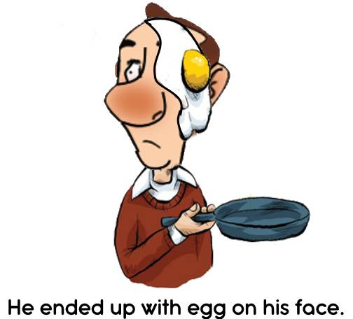 Примечание. Have egg on your face значит оказаться в глупом или в неловком положении, главным образом из-за допущенной ошибки, «сесть в лужу».