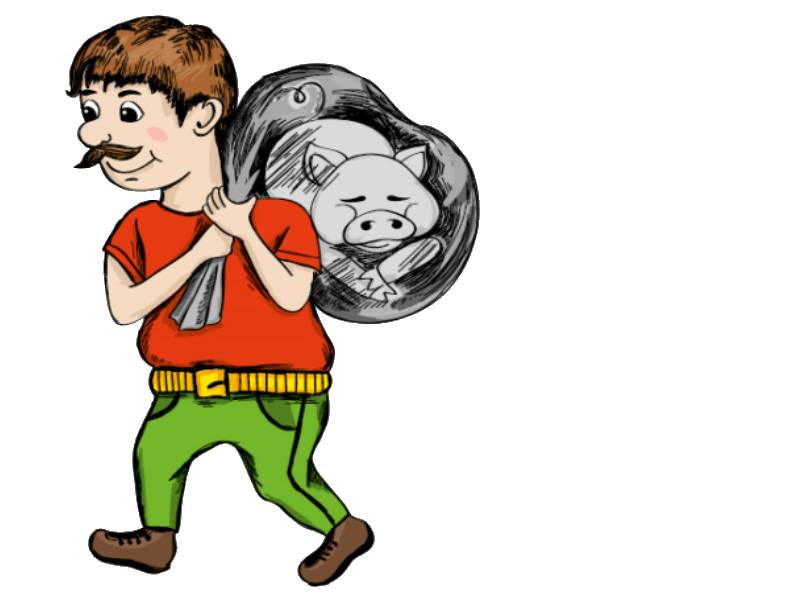 Поросенок в мешке (poke – «небольшой мешок», «торба») – это приобретение, о качестве или полезности которого покупателю ничего не известно. Мы в таких случаях говорим: «Купил кота в мешке». Например: “It looks like I bought a pig in a poke.” – «Похоже, я купил кота в мешке»; “I don’t want to buy a pig in a poke.” – «Я не хочу купить кота в мешке».