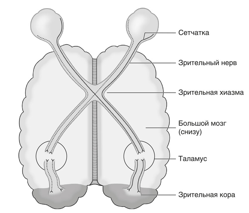 Рисунок 3.3. Пути прохождения информации от глаза к мозгу