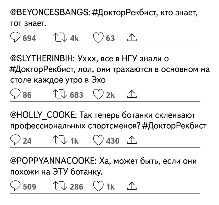 – Твое имя теперь ассоциируется с чем-то позитивным. Чем больше люди будут думать о #ДоктореРекбисте, тем меньше они будут помнить о… прошлом, – продолжала гнуть свое Фатима.