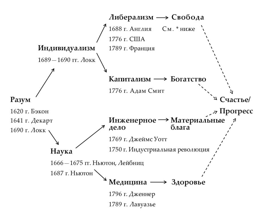 В Просвещении сложились те черты современного мира, которые многие теперь воспринимают как само собой разумеющиеся: либеральная политика и свободные рынки, научный прогресс и технические инновации. Все четыре этих атрибута зависят от веры в силу разума.
