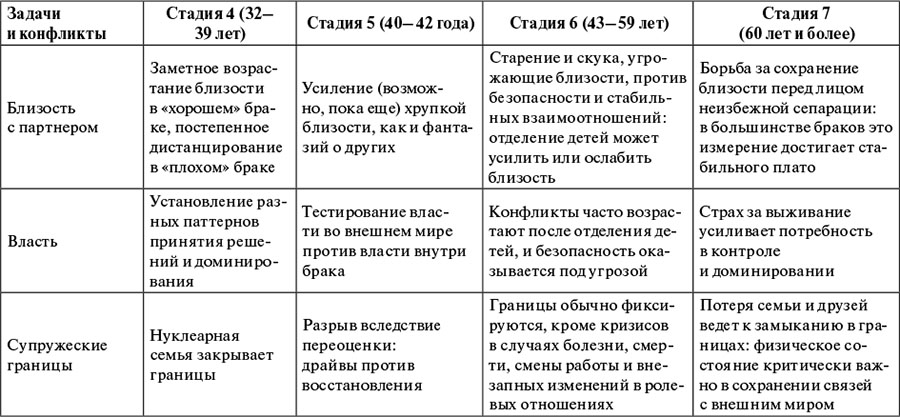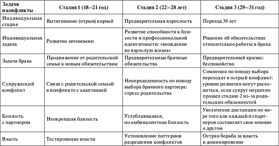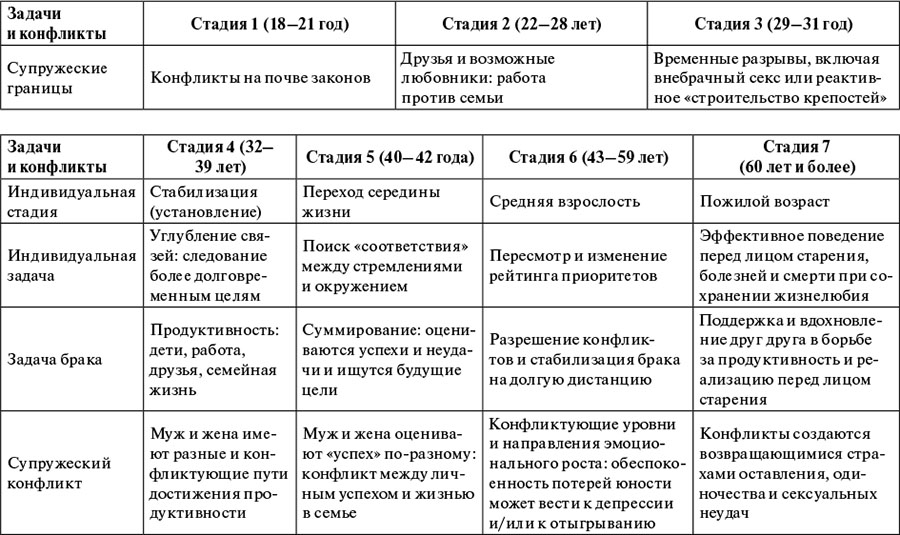 Что касается таблицы, то она иллюстрирует как индивидуальные задачи развития, так и задачи брака.