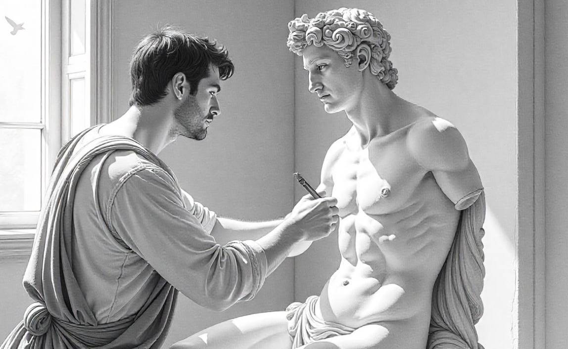 И получилось, что каменная глыба, на покупку которой была затрачена немалая сумма, пылилась теперь в темном зале мастерской. Друзья великого Микеланджело решили написать художнику в Рим, где он жил в то время. Только он, писали они, мог бы сделать что-то с мрамором, который, несмотря на дефект, был просто великолепен. Микеланджело приехал во Флоренцию, осмотрел камень и пришел к заключению, что мог бы вырезать из него фигуру, придав ей такую позу, чтобы обойти искалеченный участок. Микеланджело решил ваять юного Давида с пращой в руке.