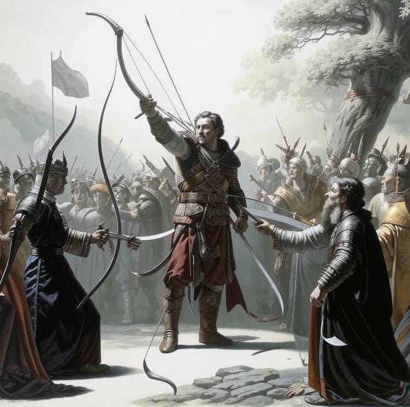 Великий государь, – ответил он, – я пришёл не для того, чтобы одержать победу, нанеся урон Вашей чести, а для того, чтобы сохранить вашу честь. Мастерство измеряется не только точностью попадания, но и мудростью намерения. Поэтому стремился к тому, чтобы судьи и зрители присудили Вам первое место в состязании.