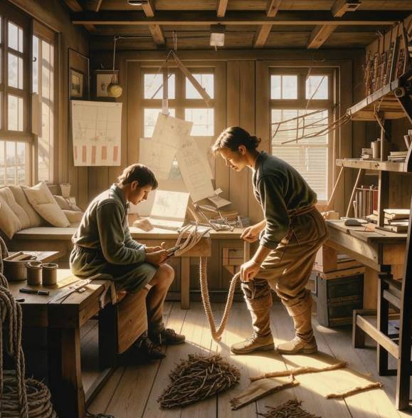 С утра до вечера Чжу осваивал искусство плетения. Первые недели он учился держать верёвки, понимать их текстуру и натяжение. Затем Ма Тэн стал показывать сложные узлы: узлы-сети, узлы-печати, узлы-лабиринты. Каждый из них требовал невероятного терпения и точности.