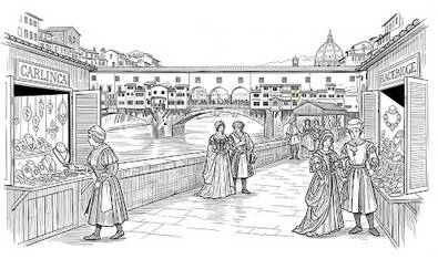 На Понте Веккьо, древнем мосту через Арно, в золотых лавочках работали лучшие ювелиры Европы. Бенвенуто Челлини, хотя и родился позже в 1500 году, в мемуарах описывал атмосферу: «Мост был словно шкатулка с драгоценностями. Каждая мастерская – отдельная жемчужина. Здесь ковались короны для королей и тиары для пап».
