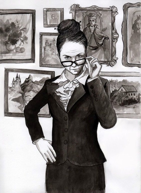 Марк всё коротко объяснил, дверь открылась и они вошли вовнутрь замка. К ним вышла женщина в синем пиджаке и белым жабо на блузке, с круглым пучком на голове. Марк ткнул локтем Юлю.