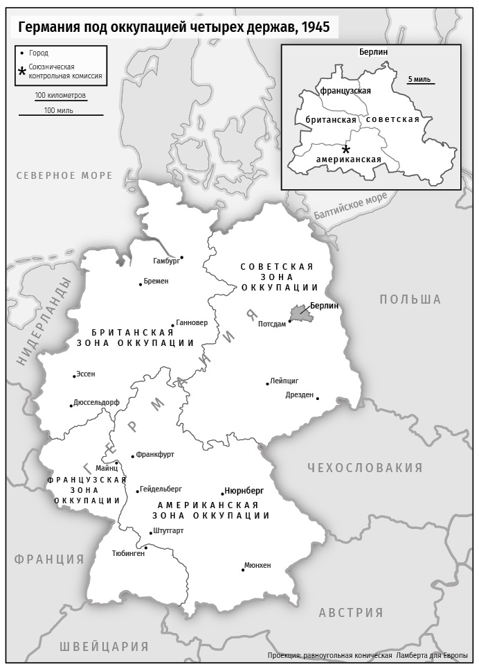 Карта 2. Германия под оккупацией четырех держав. 1945 год