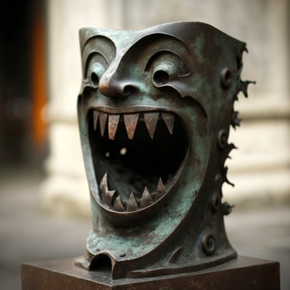 – Что это за штука?! – спросил Кичиро, указывая на железную скульптуру лица. Она жутко и широко улыбалась.
