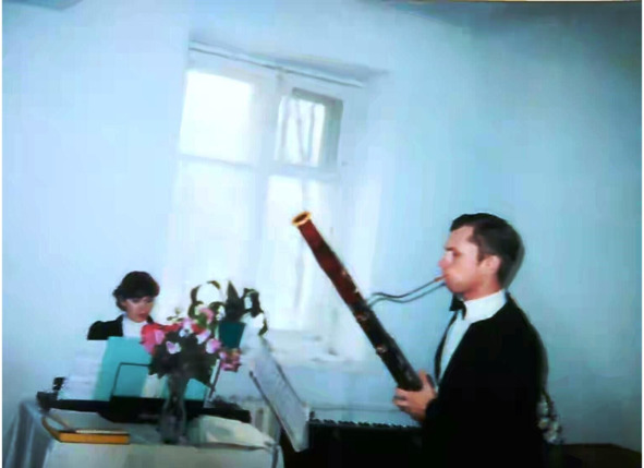 07. 01. 2010 г. Выступление на рождественском концерте в общине г. Шимановска Амурской области. За портативным электроорганом – преподаватель музыкального отделения Шимановской ДШИ Любовь Григорьевна Ирхина. У ней я занимался в музшколе по специальности вторую половину пятого – начало седьмого класса (1982-й – 1984-й годы) и позже, во время подготовки к поступлению в БМУ (1985-й год). В феврале 2021-го года Любовь Григорьевна ушла в мир иной, не пережив ухода в вечность супруга, скончавшегося от модной в 2020-2021-м годах вирусной инфекции.