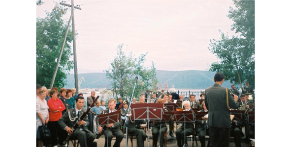 Концерт военного оркестра штаба ДВО в Центральном парке культуры и отдыха г. Николаевска-на-Амуре.