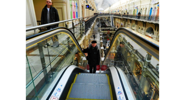 На эскалаторе московского ГУМа.