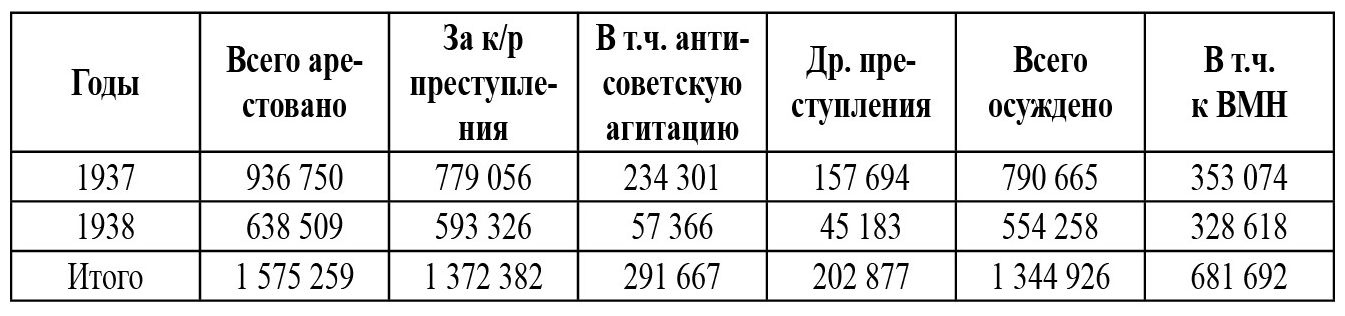 Всего же, согласно записке «Об антиконституционной практике 30—40-х и начала 50-х гг. было подвергнуто репрессиям 3 778 234 человека, в том числе 786 098 человек были приговорены к расстрелу. При этом в отношении некоторых из осужденных лиц подобные судебные и несудебные[61] решения принимались неоднократно, в связи с чем реальное число осужденных несколько меньше суммы вынесенных приговоров.