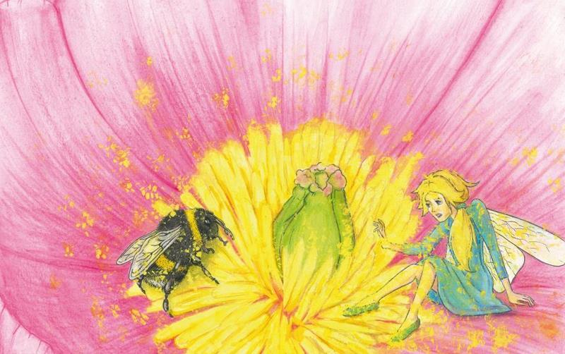 Подлетев на зов о помощи к большому розовому цветку пиона, Инея заглянула внутрь и увидела испачканную с ног до головы сестру и барахтающегося рядом шмеля.