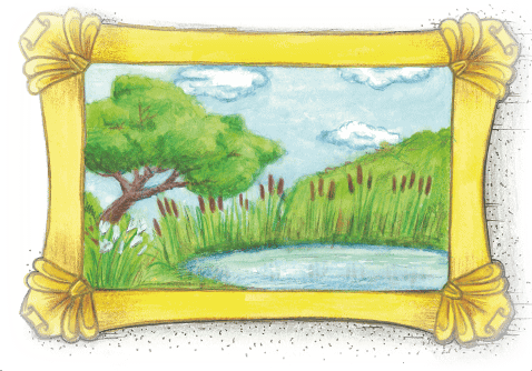 Фея полетела к картине. Опустившись на резную золочёную раму, она поднесла свои волшебные ладошки к губам и дунула пыльцой на картину. В то же мгновение от картины повеяло лёгкой прохладой, прямо в лицо Ли-Ли дунул приятный ветерок. Нарисованные деревья зашевелились, покачивая своими ветвями. На поверхности пруда появилась мерцающая, лёгкая рябь, где-то вдали заквакали лягушки, зашумели и зашевелились кусты рогоза, осоки, камыша. То тут, то там стали кружить мотыльки, жуки и стрекозы.